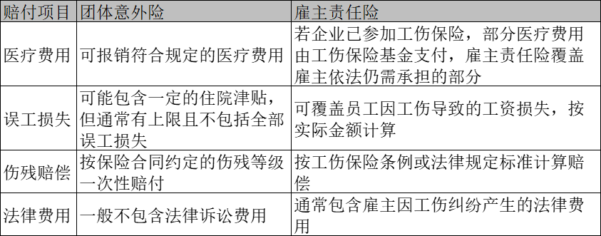 團(tuán)體意外險的保障范圍較窄,通常只覆蓋意外身故、傷殘和意外醫(yī)療費(fèi)用,像誤工費(fèi)、護(hù)理費(fèi)、傷殘津貼等工傷賠償項目大多不在保障內(nèi)。