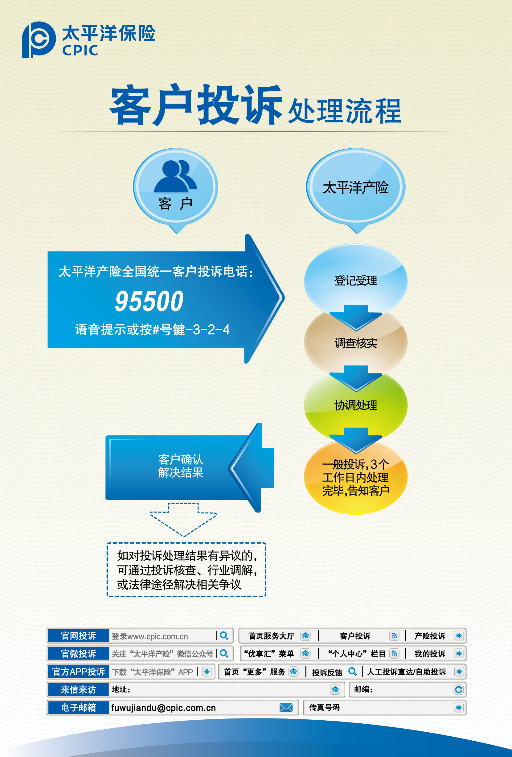 5.信函及接待地址、傳真號碼、電子郵箱等投訴渠道,請關(guān)注各省級分公司及分支機構(gòu)公布信息